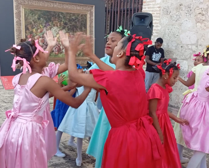 La Plazoleta Española, frente al reloj de sol en la Ciudad Colonial, deja de ser un espacio urbano para convertirse en escenario. Allí, las imágenes de Goya, revisitadas desde una sensibilidad contemporánea, cobran nueva vida en una síntesis de teatro, danza y comunidad.