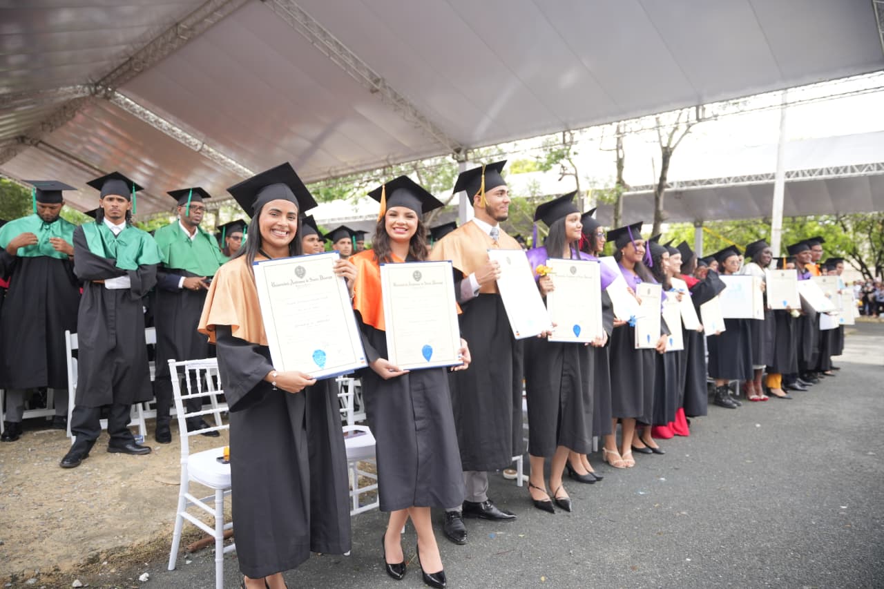 El acto, que inició con la entonación de los himnos Nacional y Universitario interpretados por el Coro de la UASD, reconoció también a los egresados con los más altos índices académicos, encabezados por Daniela del Carmen Vicente Estrella, licenciada en Publicidad mención Diseño, quien obtuvo un índice de 96.7 puntos, Summa Cum Laude y fue reconocida como la más destacada de la promoción.