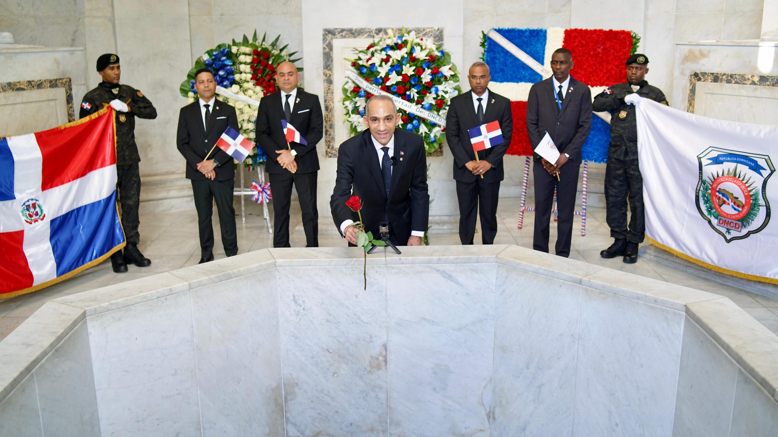 SANTO DOMINGO.- La Dirección Nacional de Control de Drogas (DNCD) depositó este lunes una ofrenda floral en el Altar de la Patria, como parte de las actividades conmemorativas del Mes de la Patria y el 182 aniversario de la Independencia Nacional.