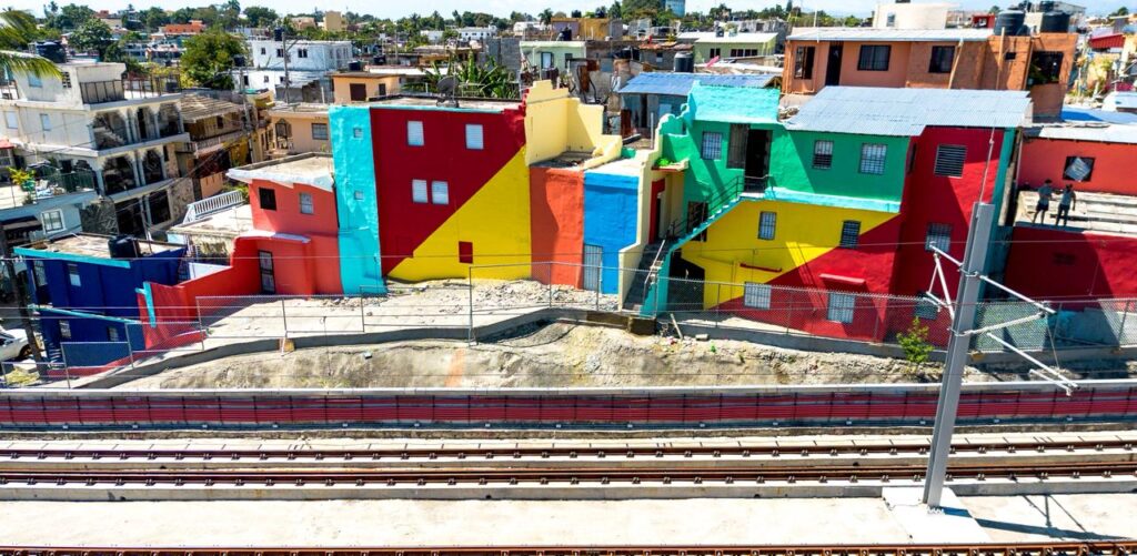 La intervención incluyó el remozamiento de 144 viviendas pertenecientes a familias en condiciones de vulnerabilidad, así como la creación de 11 Paseos de los Colores, que suman más de 2,500 metros cuadrados de arte público, distribuidos desde el kilómetro 9 ½ de la Autopista Duarte hasta la entrada del municipio de Los Alcarrizos.