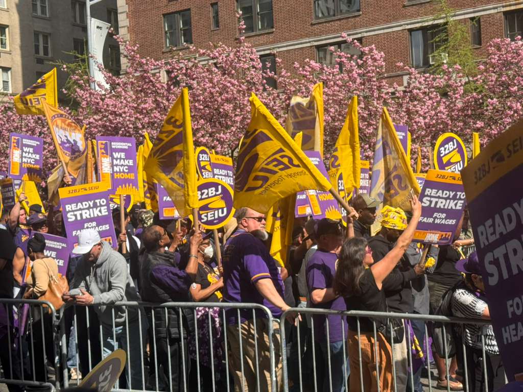 Más de 34.000 empleados forman parte del sindicato Service Employees International Union (SEIU), Local 32BJ, que celebró una concentración en el Upper East Side durante la tarde.